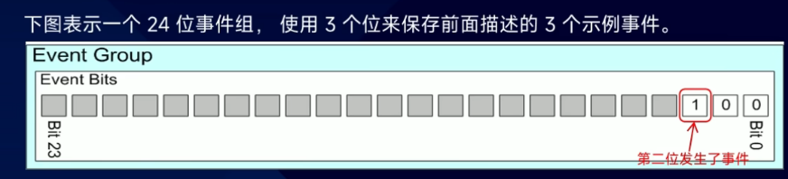 - 事件组:是一组事件位,事件组中的事件位通过位编号来引用。