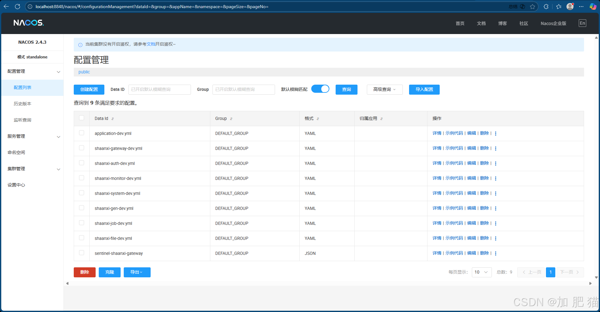 访问Nacos控制台的服务列表,可以:
