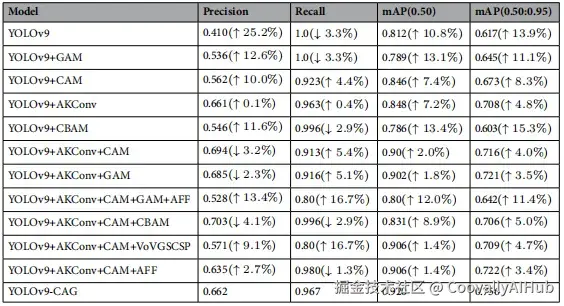 通过在多个数据集上进行消融实验和对比实验,YOLOv9-CAG模型展现了全面而显著的性能提升。