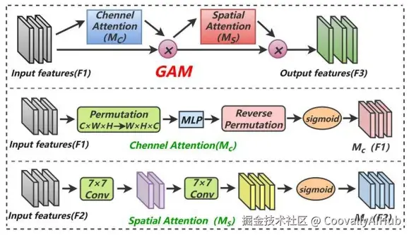 其次,在头部网络的中间部分,集成 GAM全局注意力机制。该机制能自适应地对特征图进行通道和空间上的加权,让模型聚焦于图像中的关键区域,同时抑制无关背景干扰,从而提升对远距离、小尺寸无人机的识别精度。