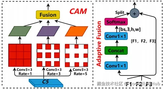 首先,在主干网络末端,用 CAM上下文特征增强模块替换了原有结构。该模块能更好地建模全局上下文信息,尤其有利于在复杂背景中提取小目标的细微特征,提升模型对无人机关键部位的关注度。