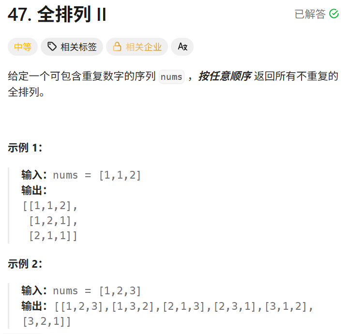 - [二、47. 全排列 II](#二、47. 全排列 II)