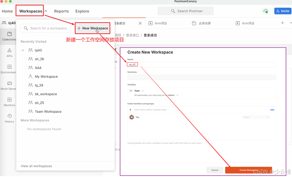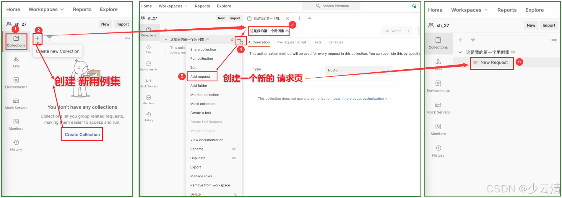 - 使用方法:先建工作空间存放项目,再建用例集。