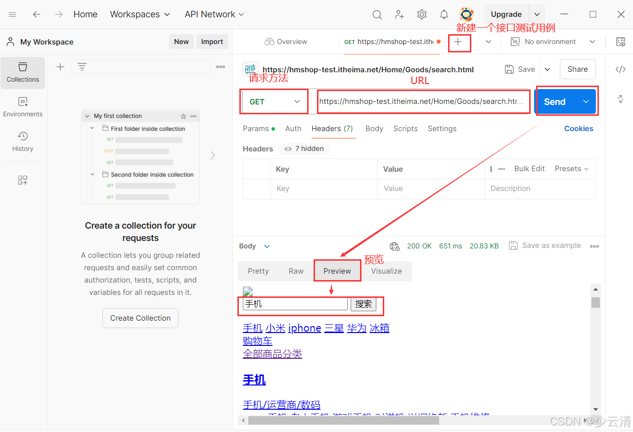 - URL:https://hmshop-test.itheima.net/Home/Goods/search.html?q=手机