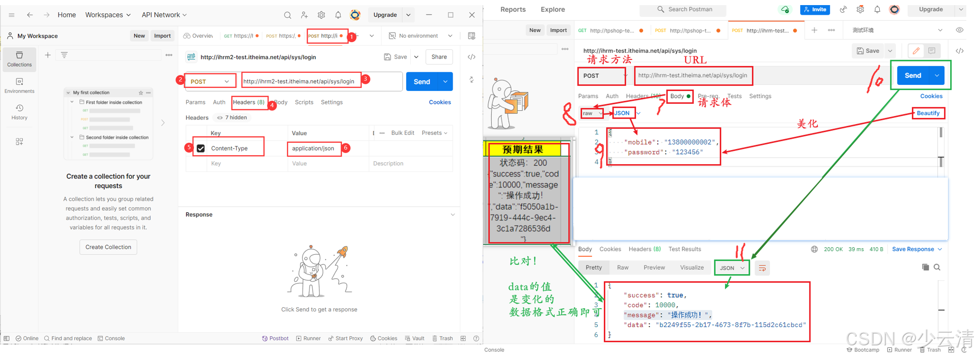 从接口文档,获取 登录接口 的 http请求,使用 Postman 发送