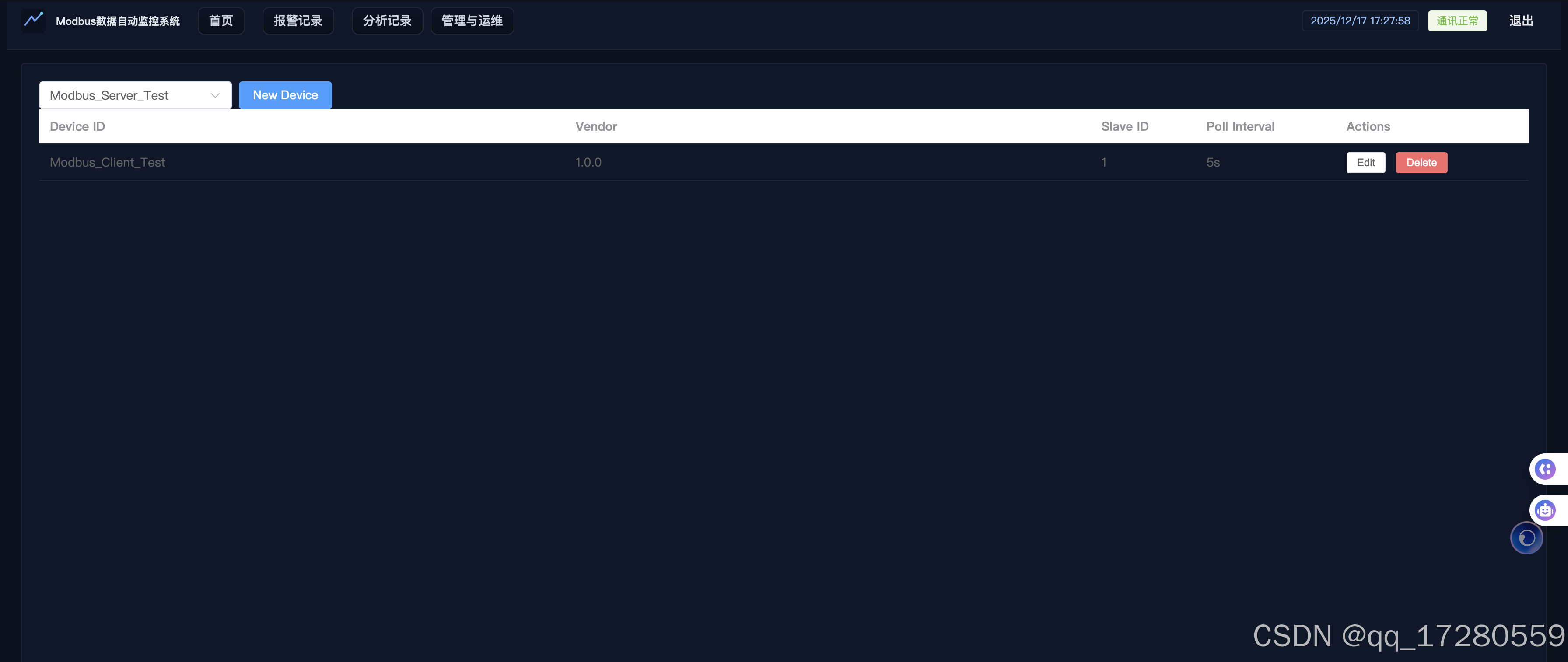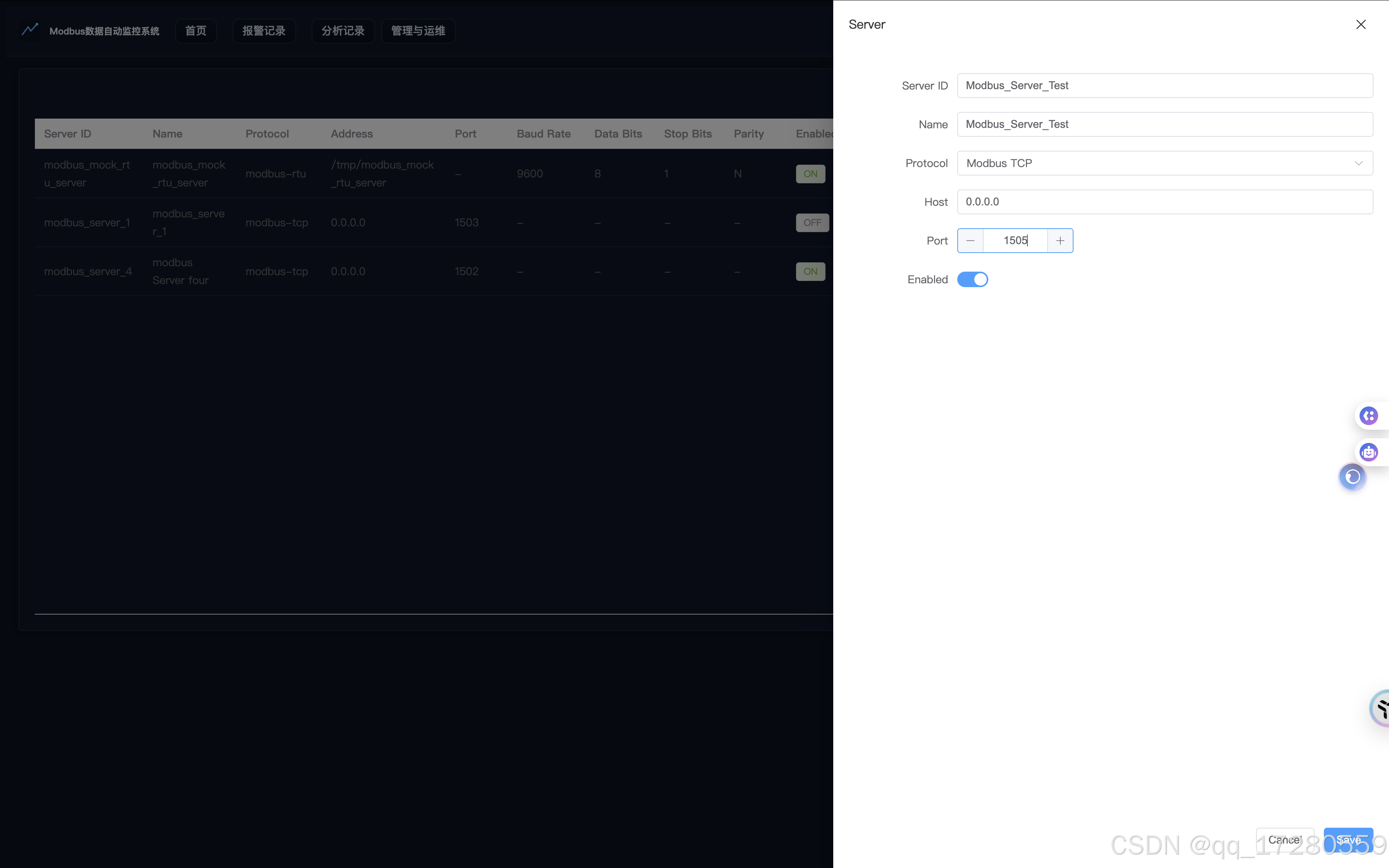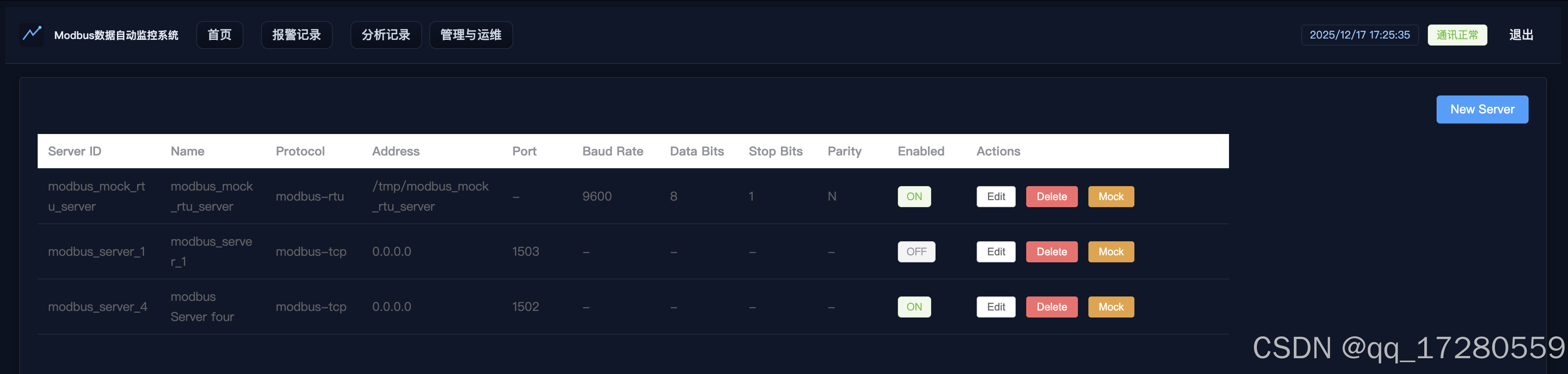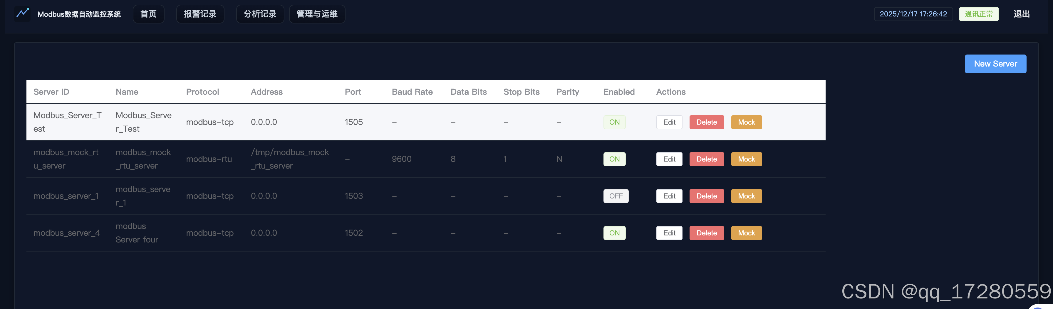 1、Modbus Server管理(CURD),创建TCP和RTU服务端;