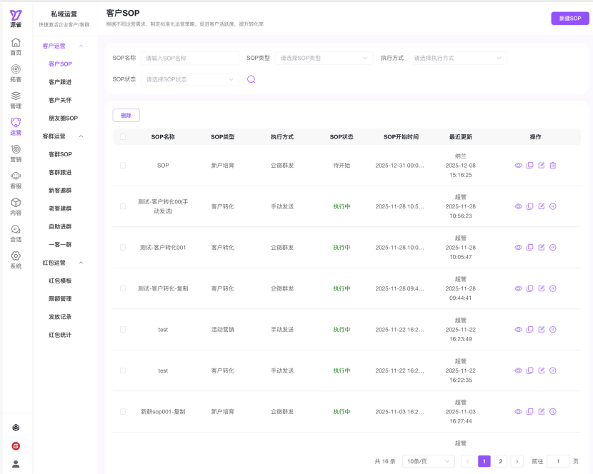 传统SaaS模式SCRM数据存储于第三方服务器,企业面临数据泄露、隐私合规等隐患。源雀SCRM通过私有化部署**** ,支持企业本地或私有云部署,数据100%自主可控,满足金融、医疗等高敏感行业的合规需求。****