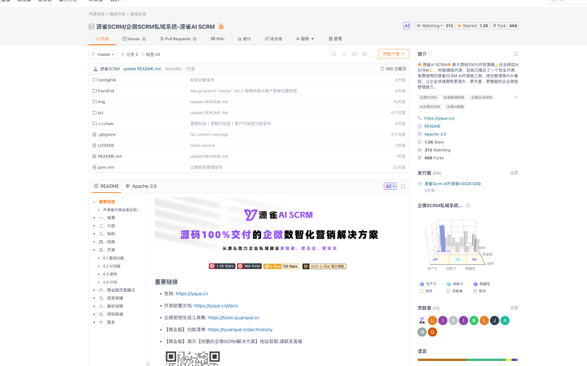 在数字化竞争白热化的2025年,企业私域运营已从"流量争夺"转向"价值深耕",但传统SCRM系统因封闭架构、高昂成本及有限智能化能力,逐渐成为企业增长的掣肘。源雀SCRM 作为年度最具创新力的企微开源项目,以"100%源码开放+AI深度赋能+全链路私域数智化"为核心,为企业提供低成本、高灵活、强安全的私域运营解决方案,重新定义企业与客户的连接方式。