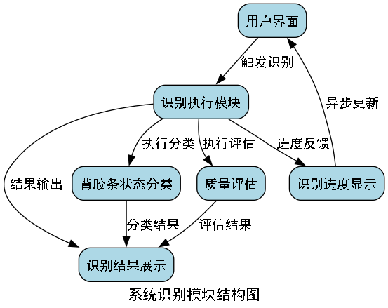 识别执行模块:执行背胶条状态分类和质量评估,显示识别进度和结果。识别过程采用异步处理方式,用户可以在识别过程中进行其他操作。