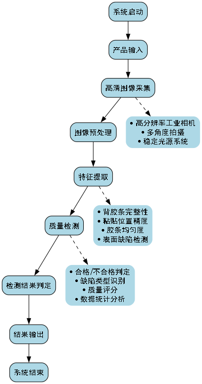 背胶条分类识别系统采用模块化设计,主要包含图像采集模块、图像预处理模块、特征提取模块、分类识别模块和质量评估模块。每个模块之间通过标准接口进行通信,确保系统的可扩展性和可维护性。