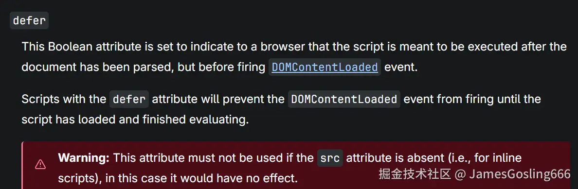 根据MDN描述:内联脚本对 async 和 defer 都不生效