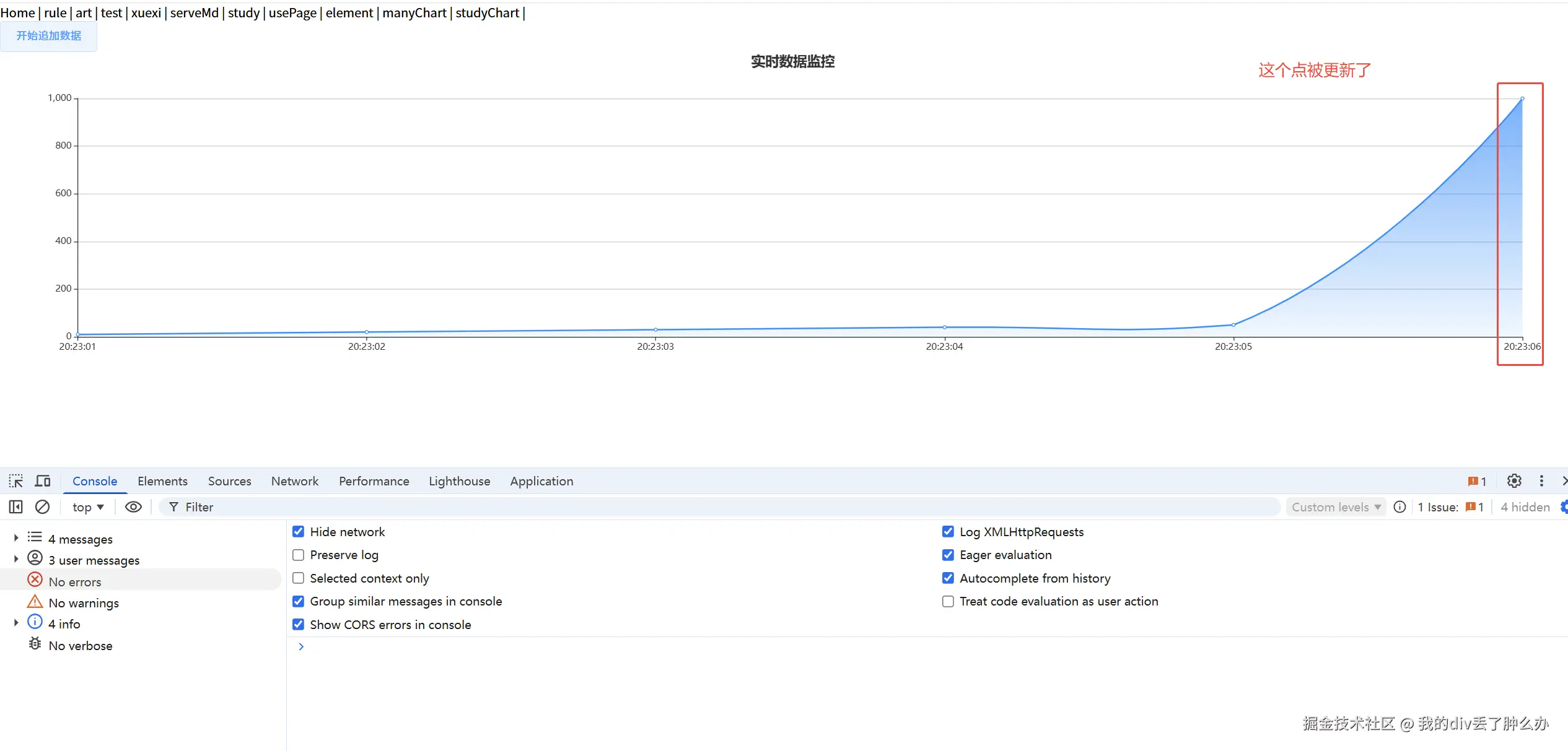 那我们思考一下,我都使用了 setOption 来更新X轴,为啥还要多使用 appendData 呢?