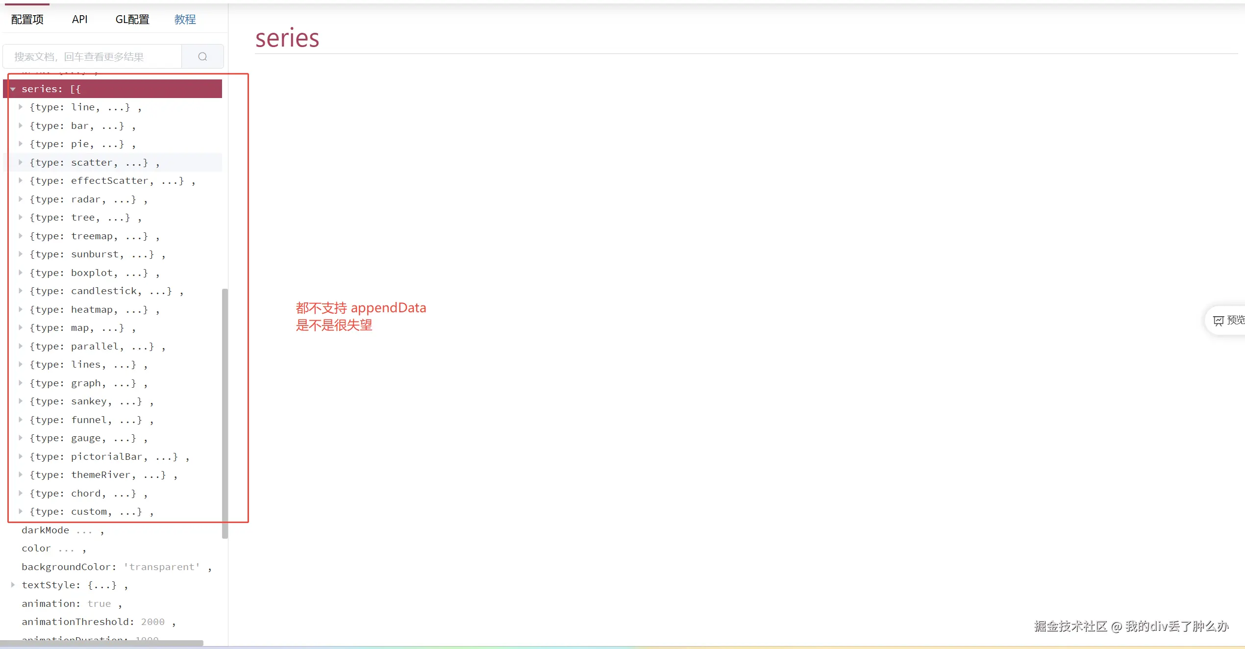 其实并不扯,appendData 就不能用在 series 系列的图表中。