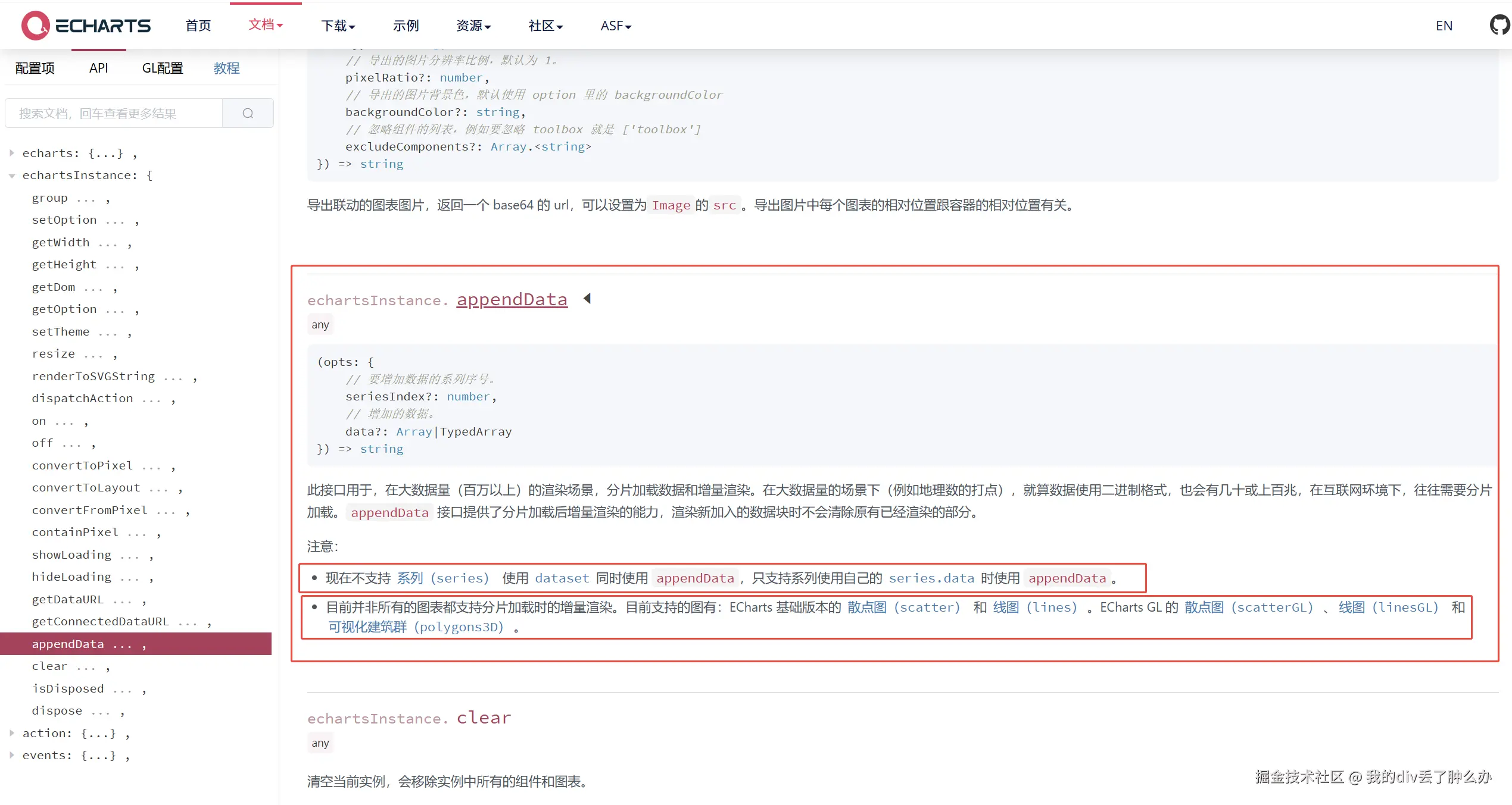 是不是就可以使用appendData 跟新折线图的数据了? 答案是:不可以。下面我们可以来看下