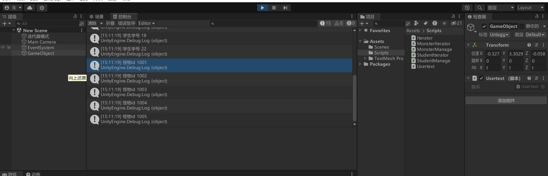 在怪物脚本中添加迭代器的创建方法。