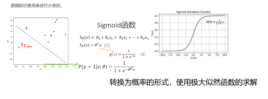 逻辑回归是一种用于解决二分类问题的统计方法,尽管名称中包含"回归",但实际上是一种分类算法。它通过将线性回归的输出映射到Sigmoid函数,将预测值转换为概率值(0到1之间),从而进行分类决策。