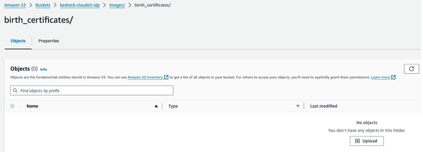 - 检索 bedrock-claude3-idp... S3 存储桶中的对象