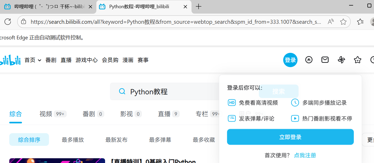 通过配置并启动Edge浏览器驱动并导航至Bilibili网站后,可使用Selenium的find_element方法定位页面的输入框元素,随后调用send_keys方法在其中输入"Python教程"并组合模拟按下回车键(通过Keys.RETURN)以触发搜索。