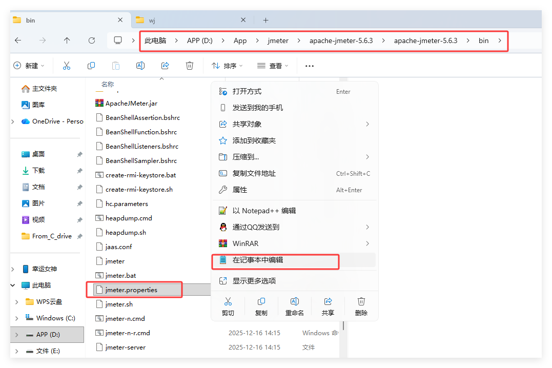 进入JMeter的bin目录下,以记事本方式打开jmeter.properties文档