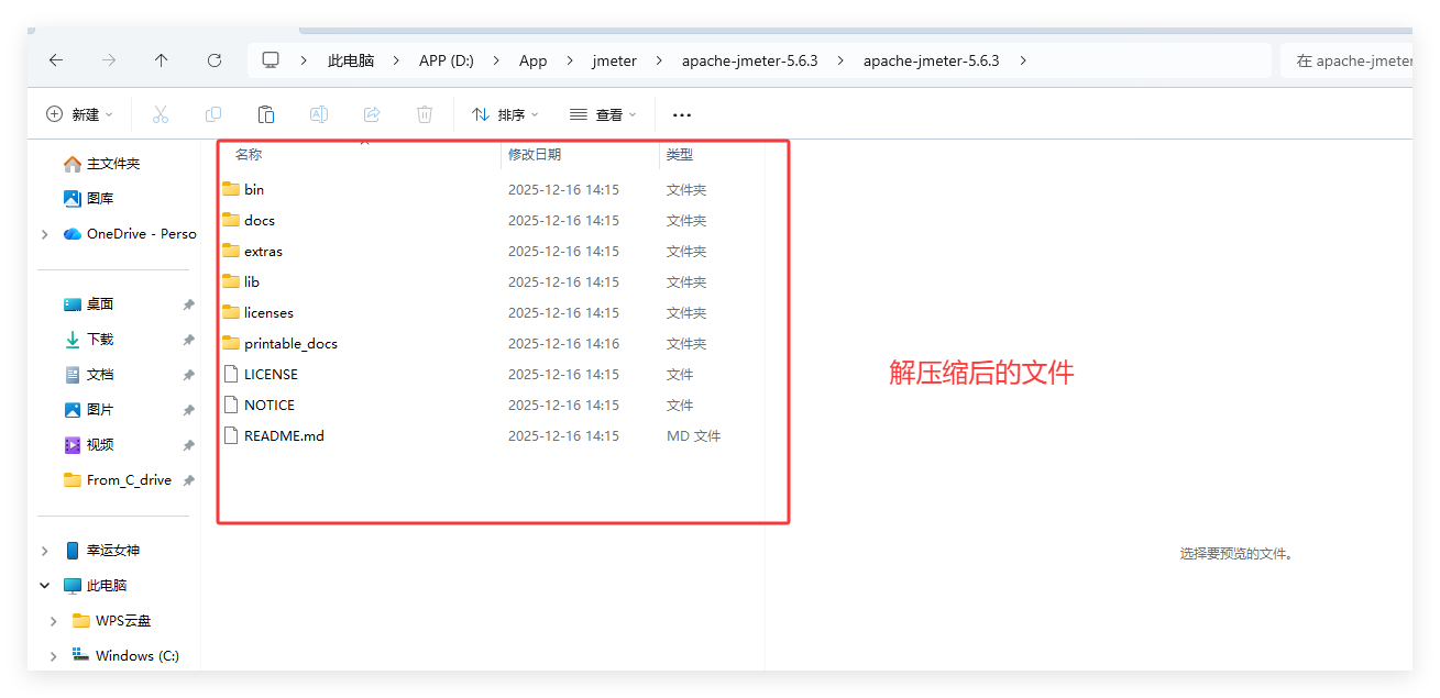 将下载好的JMeter压缩包解压到本地任意路径/指定路径