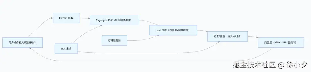 Cognee 的定位非常清晰:它不是一个完整的 AI 智能体,也不是一个普通的数据库,而是专注于解决 AI 系统的 "记忆" 问题。想象一下,如果我们的 AI 助手能够像人类一样记住过去的对话、学习过的知识,并能在需要时准确调用,那会是怎样的体验?这正是 Cognee 想要实现的。