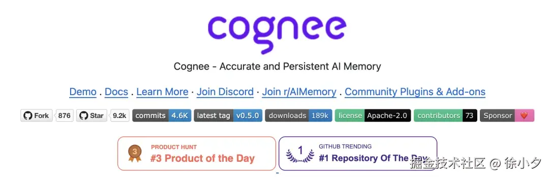 如果你也在为"AI 金鱼脑"掉头发,不妨给 cognee 一个展示自己的机会,让它帮你把 RAG 真正升级成 Memory-Augmented Generation。