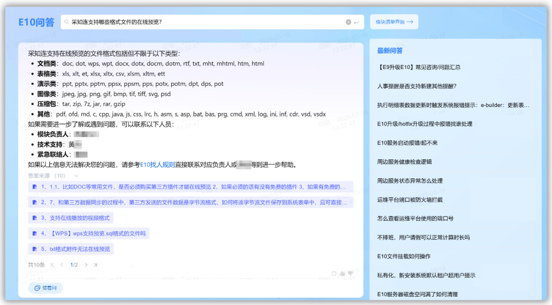 1)专题知识问答: 在特定领域的知识内容基础上借助DeepSeek提供搜推答一体化服务 。通过集成研发业务系统可自动收集产品研发过程中沉淀的技术资料,如需求说明、功能介绍、测试报告等,经过短时间的语料加工并配置提示词后,面对用户针对产品的问题即可给出精准的回复,从而帮助组织自动更新产品知识学习体系。