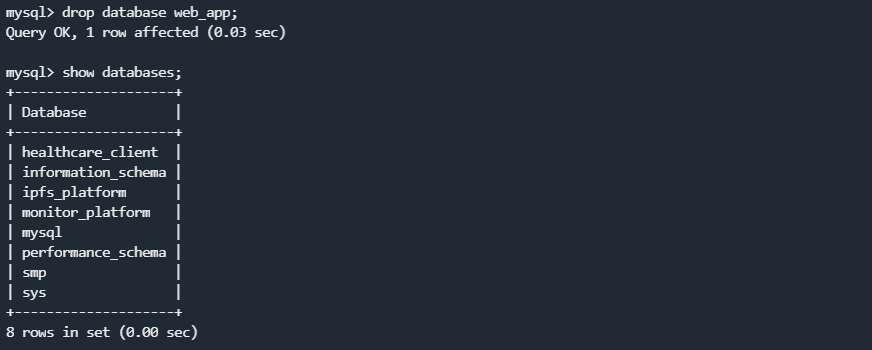 (2)删除web_app数据库,然后使用备份文件恢复该数据库: