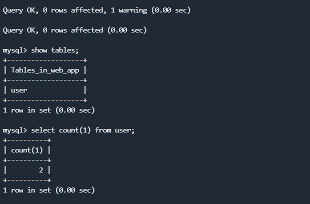 先删除数据库,然后在创建数据库web_app,此时的库下没有任何表或者数据,然后再使用source 文件路径命令进行恢复,如图所示: