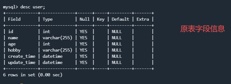 再去查询表结构:
