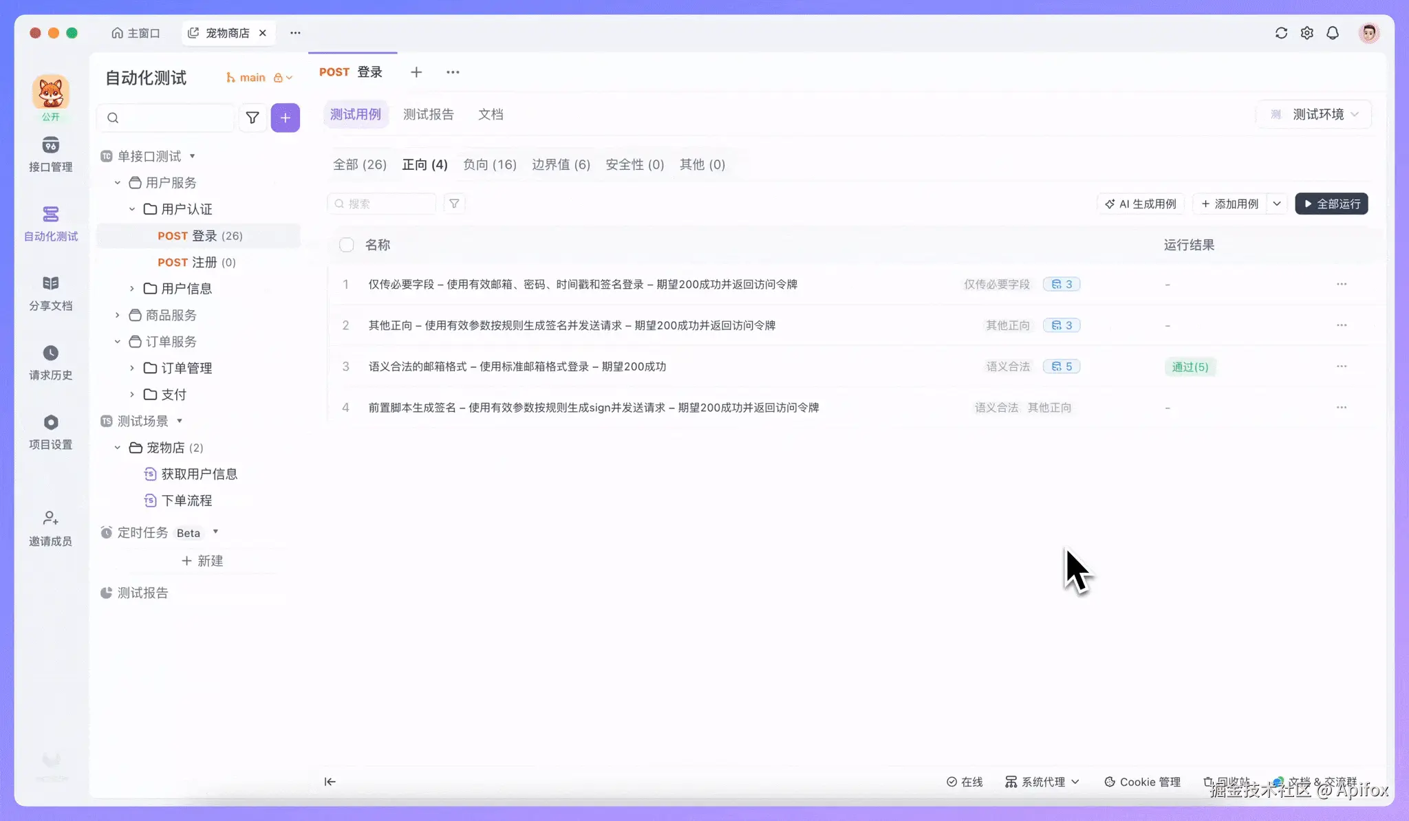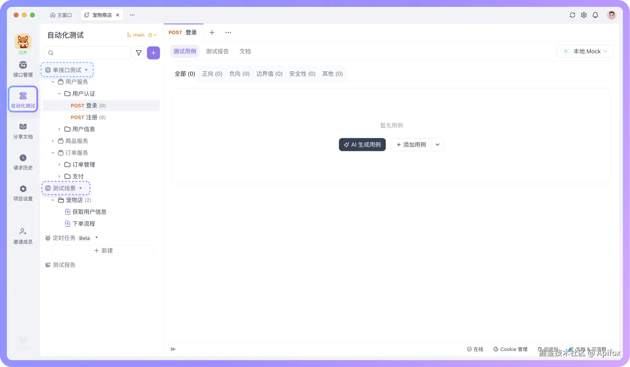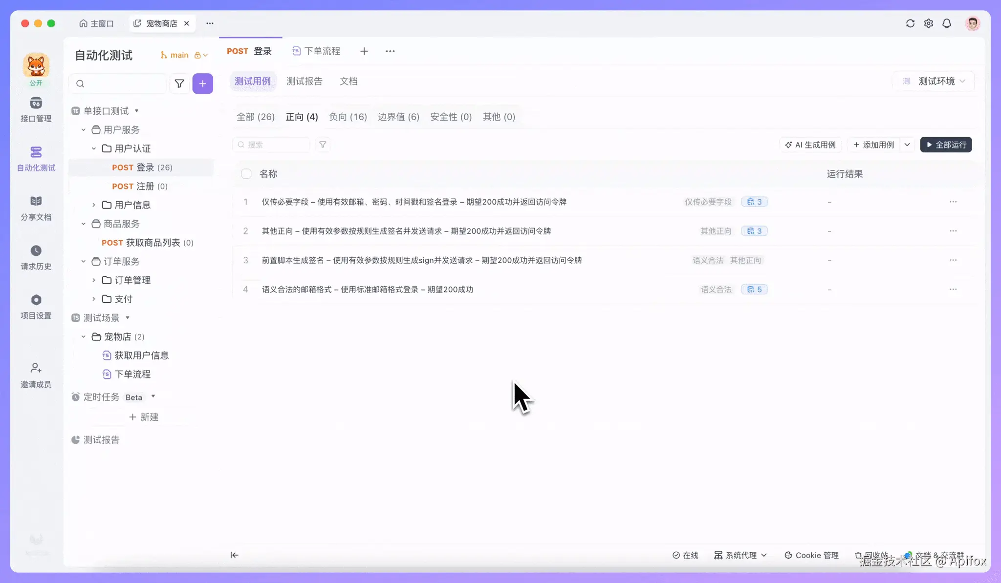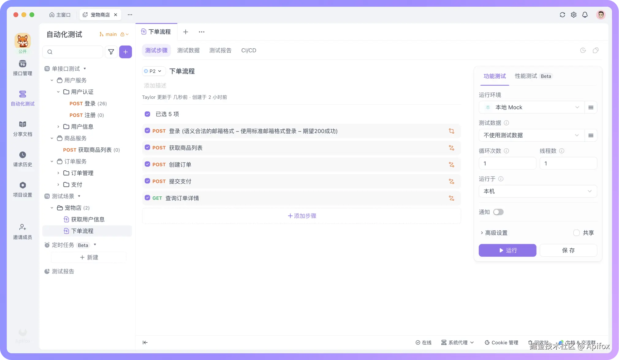 整体来看,Apifox 将单接口测试、测试场景和 AI 能力放在同一条工作流中,把接口测试中最容易卡住的几个环节(写用例、准备数据、串联流程)都放到了可操作的位置上。