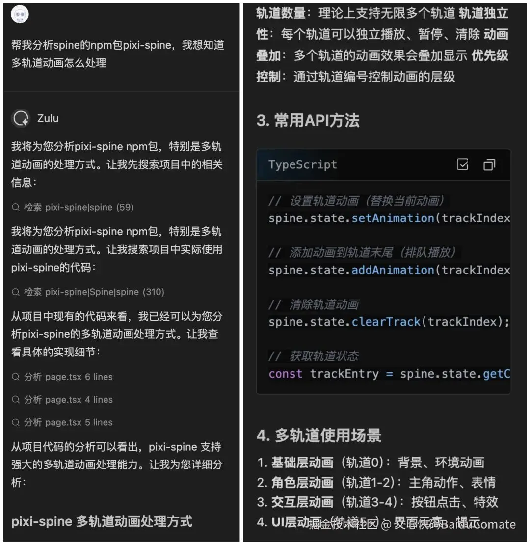 询问Comate多轨动画处理方式,Comate列出了API方法