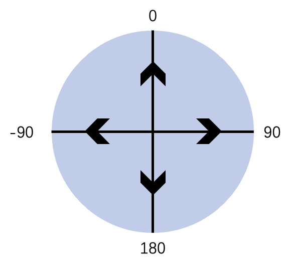 当你选择方向 时,它会根据物体移动的方向返回一个数字。这里的数字与面向...方向积木中所填的数字类似,当物体向上移动时,返回的数字接近0,向右移动时,返回的数字接近90,向下移动时,返回的数字接近180,向左移动时,返回的数字接近-90。