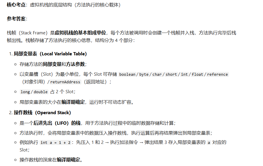 问题 12:JVM 中栈帧的结构是什么?每个部分的作用是什么?