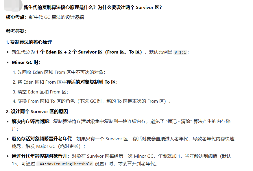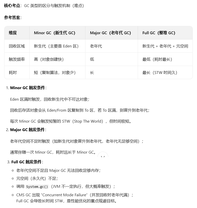 问题 8:新生代的 GC(Minor GC)和老年代的 GC(Major GC/Full GC)有什么区别?触发条件是什么?