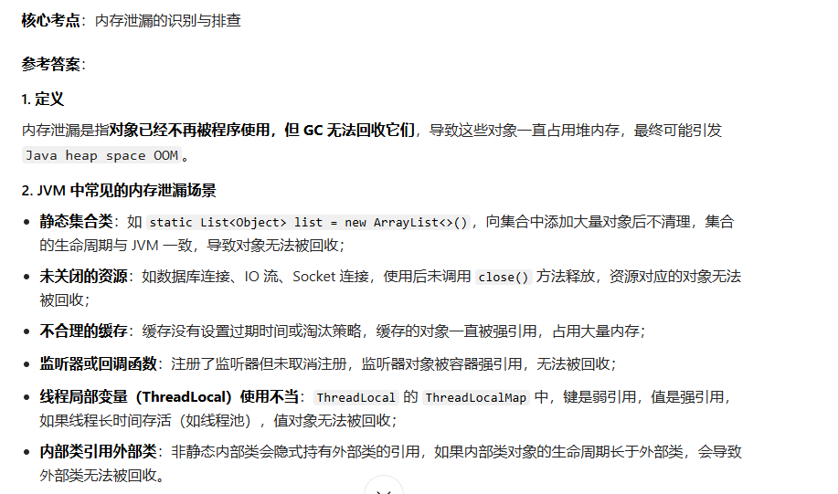 问题 10:什么是内存泄漏?JVM 中常见的内存泄漏场景有哪些?