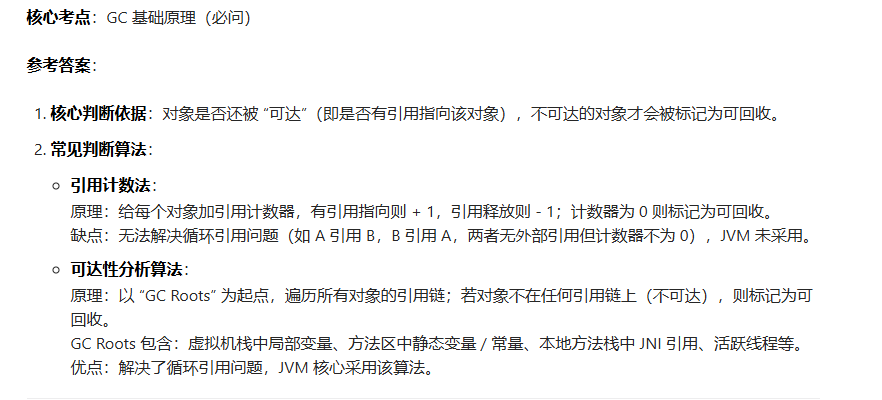问题 6:垃圾回收(GC)的核心判断依据是什么?常见的判断算法有哪些?