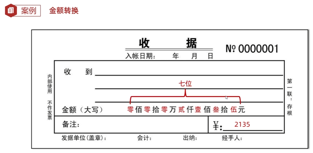 0-9对应的数字可以利用数组下标轻松转换为汉字,因此我们可以先将12345转为壹贰叁肆伍,然后再在前面补零补足7位: