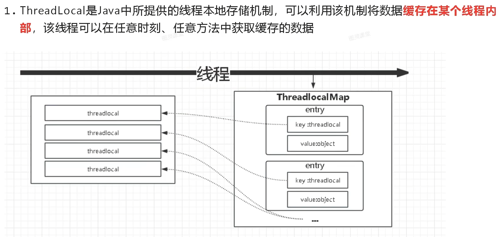每一个Thread对象中都存在着一个ThreadLocalMap,key为threadlocal对象,value为需要缓存的值,可以简单的理解为threadlocal是一个操作线程中ThreadLocalMap的一个工具类。