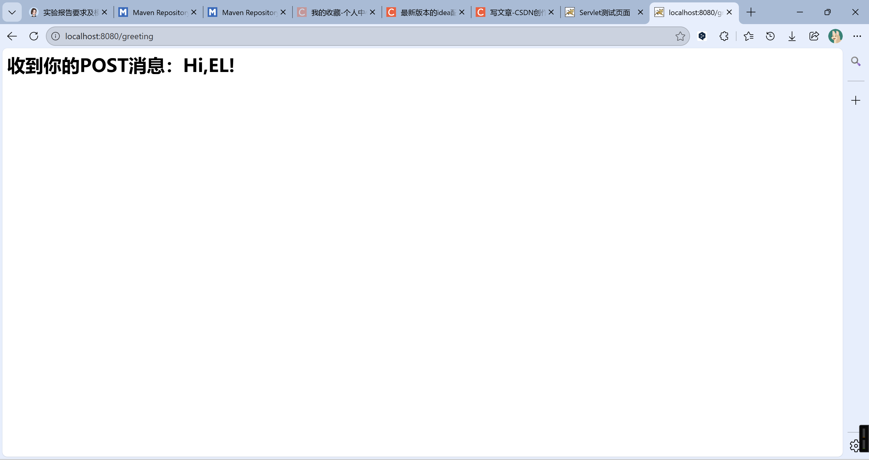 response.getWriter().println("<h1>收到你的POST消息:" + message + "</h1>");
