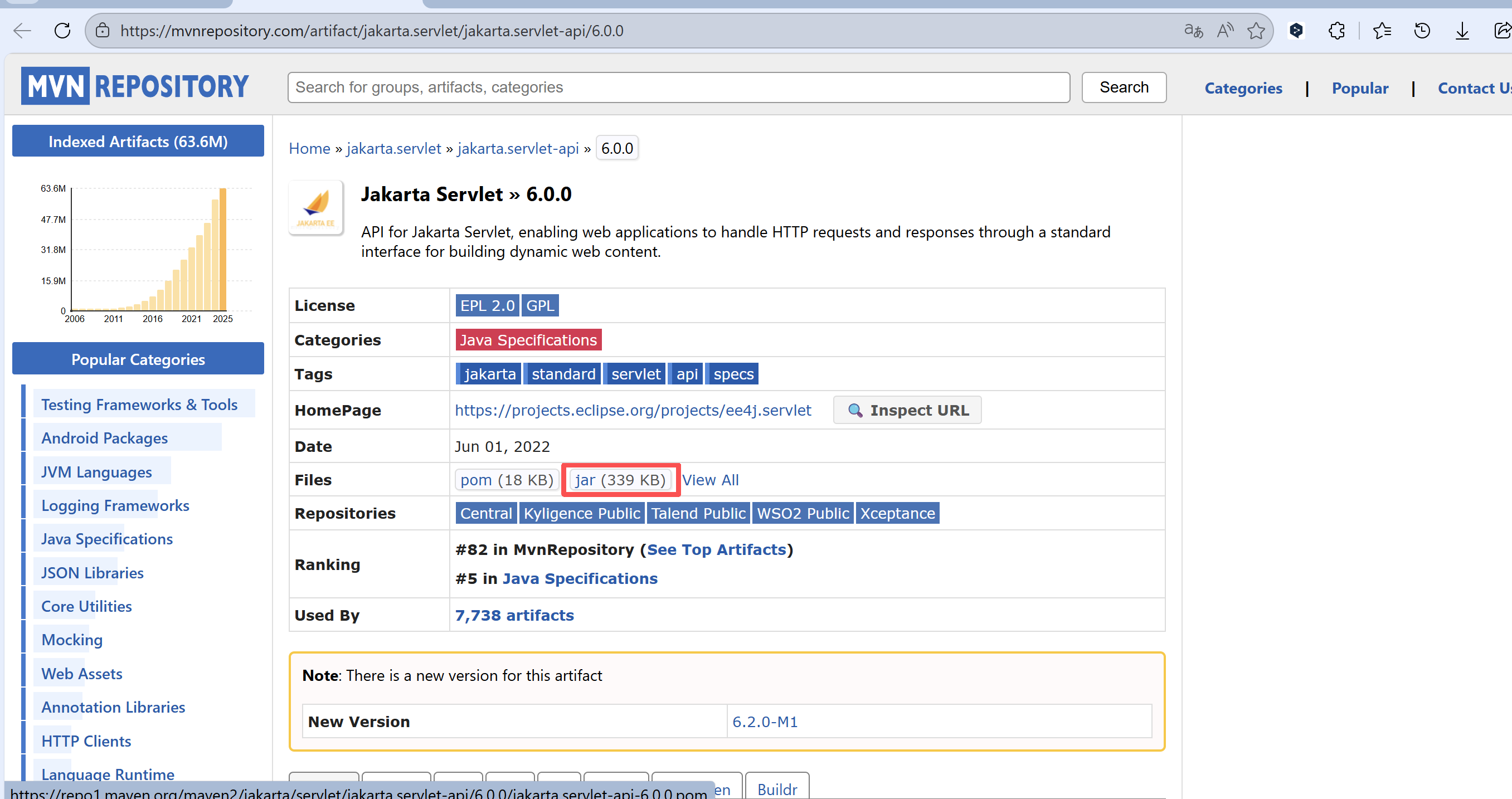 解决办法:去Maven官网下载相应的依赖Maven Repository: jakarta.servlet >> jakarta.servlet-api >> 6.0.0