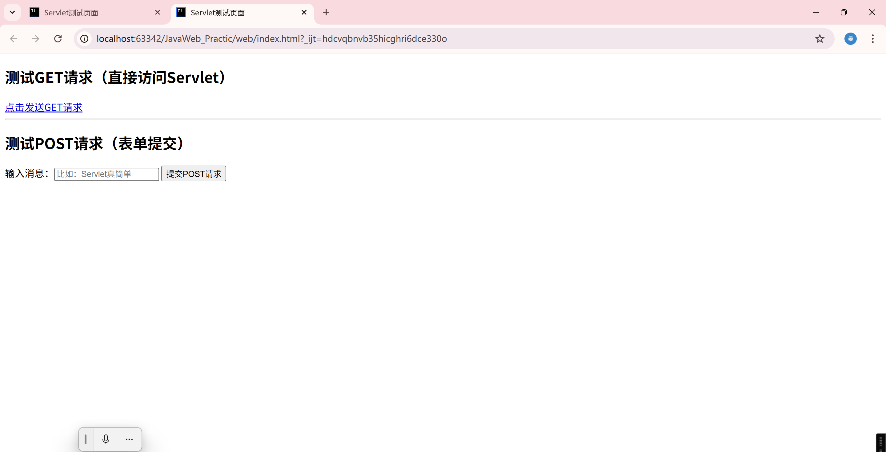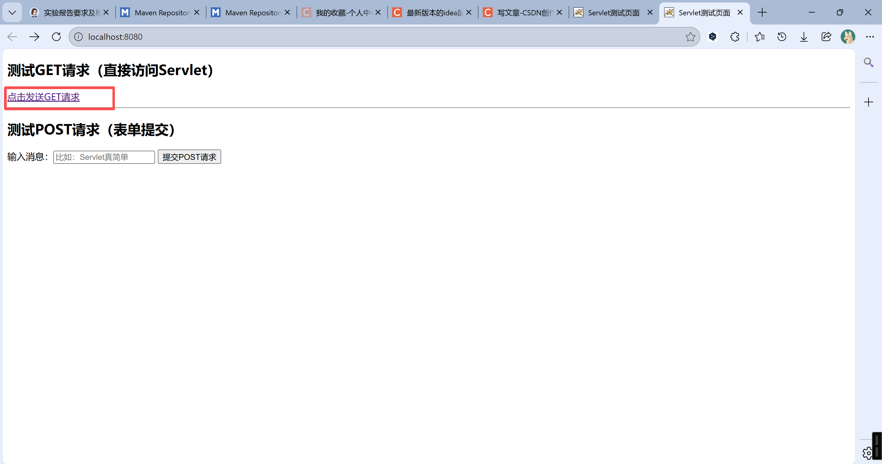 <h2>测试GET请求(直接访问Servlet)</h2>