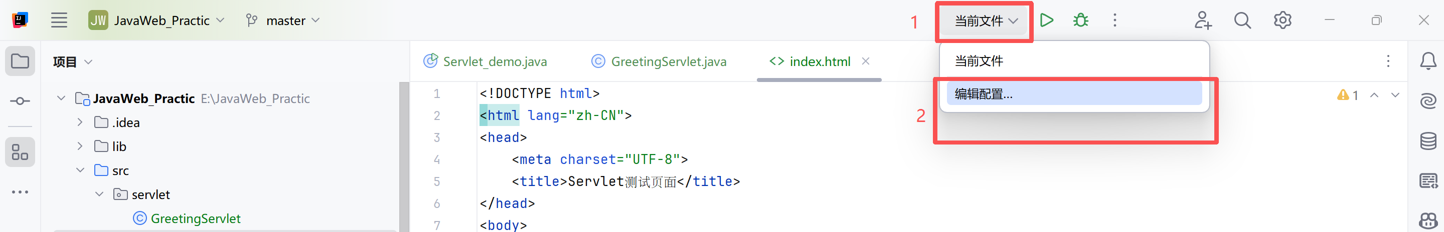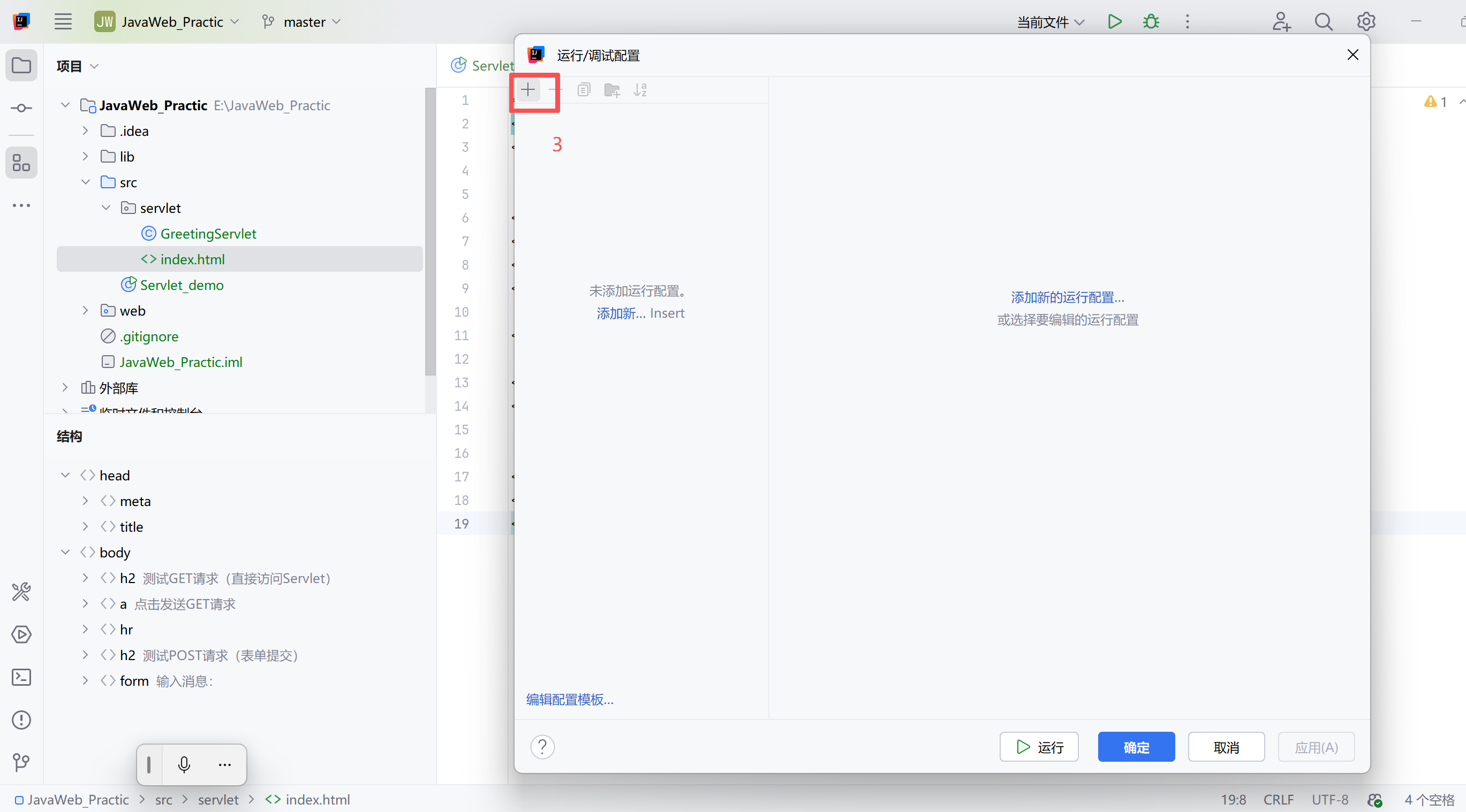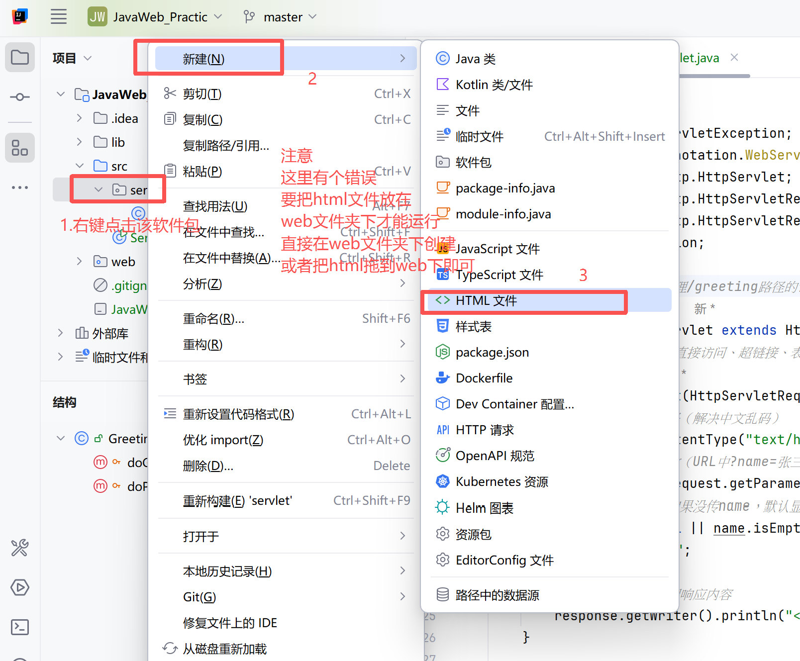 注意:这里html文件需要建在web文件夹下才能正常运行