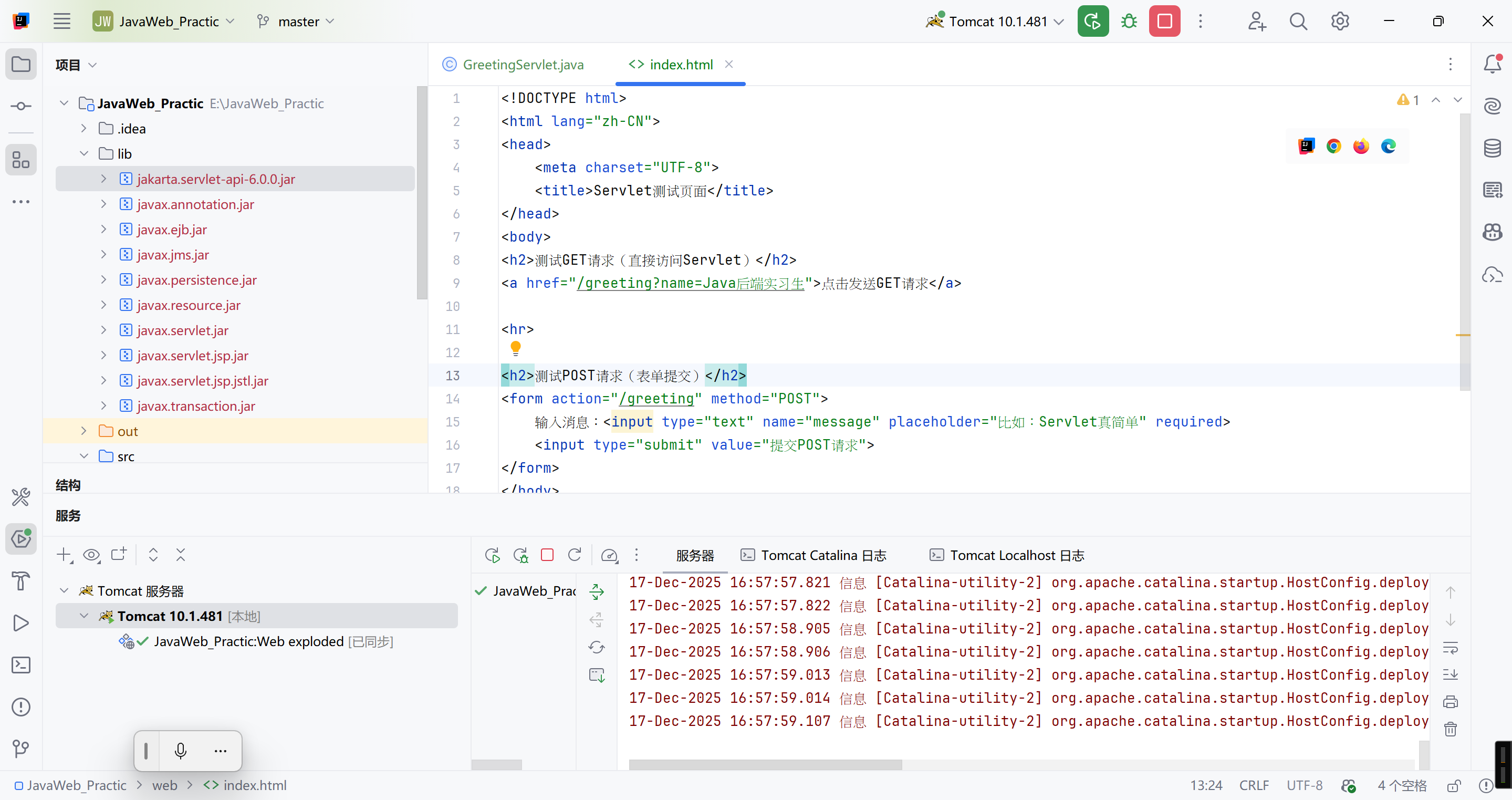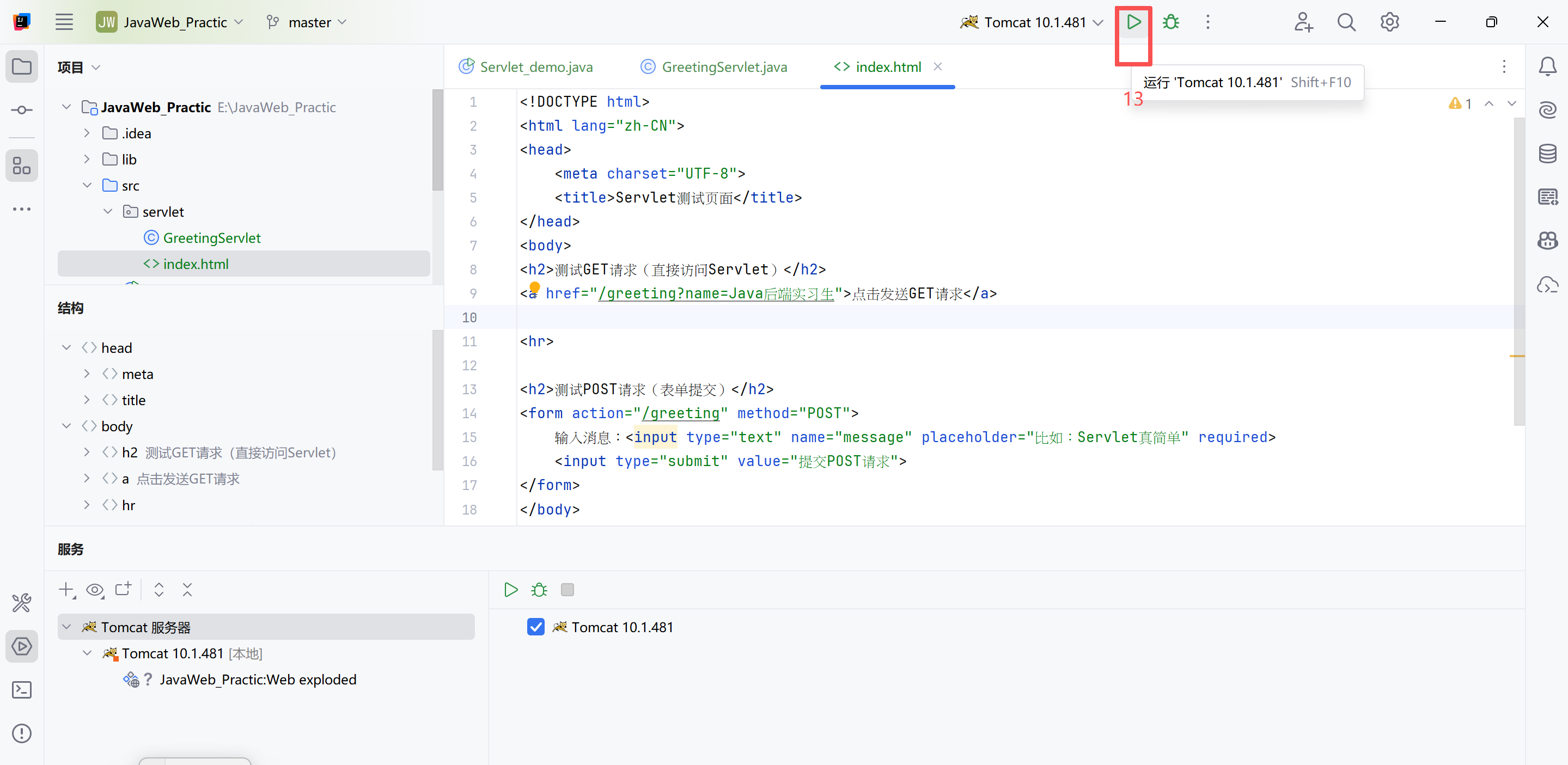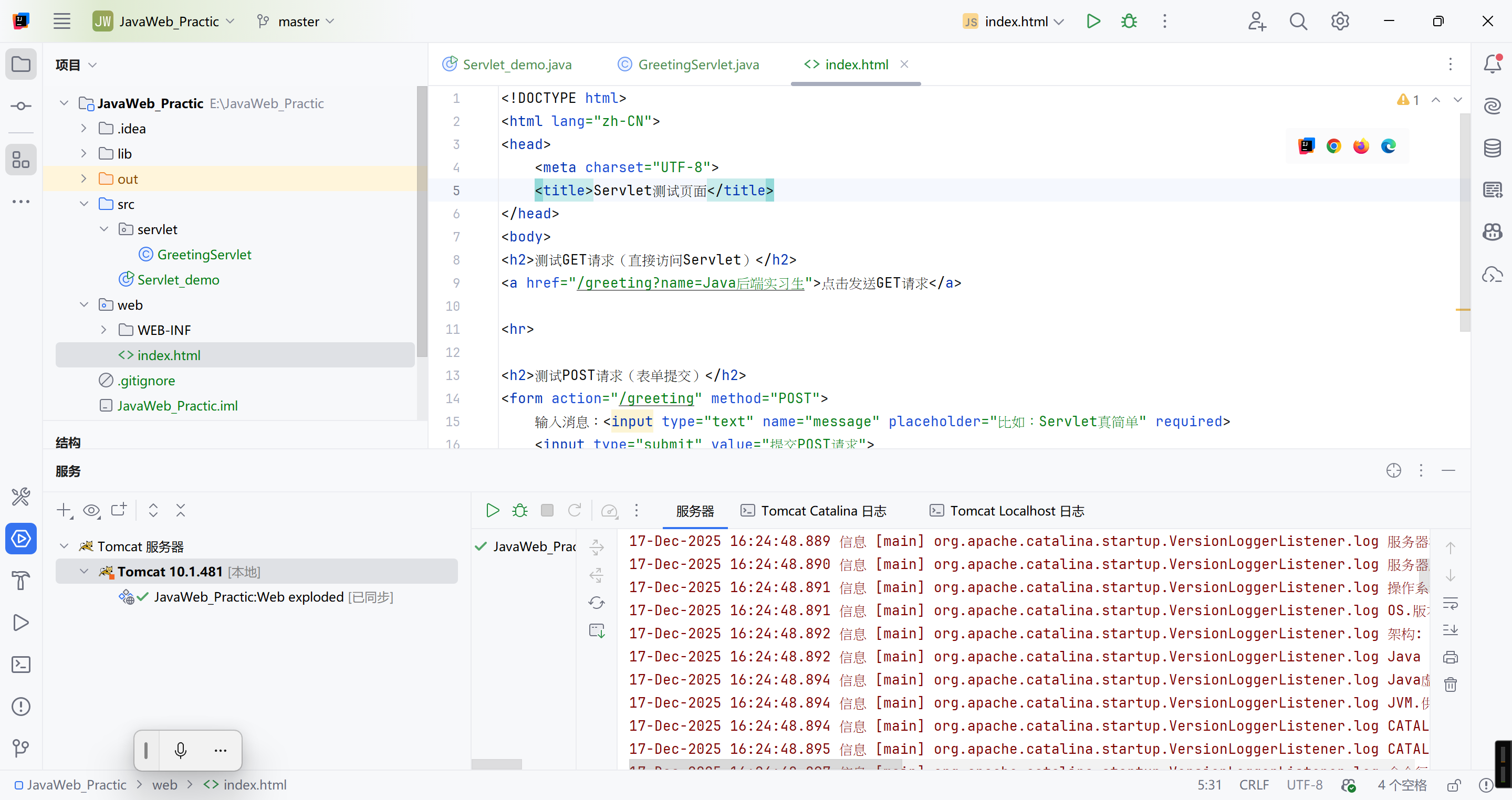 注意:这里html文件需要建在web文件夹下才能正常运行