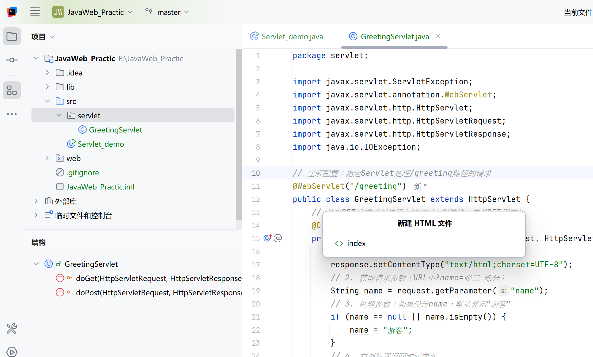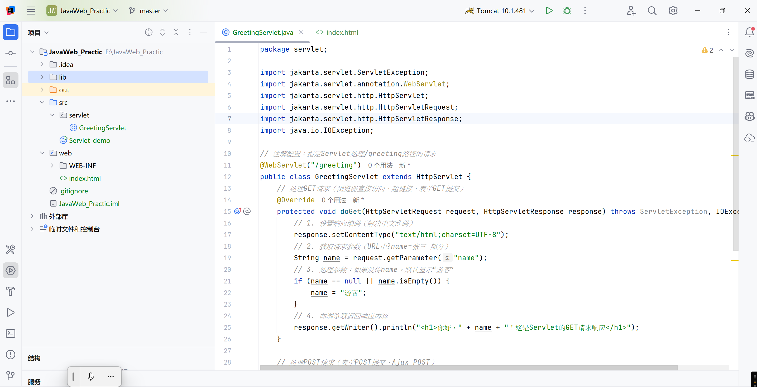 // 注解配置:指定Servlet处理/greeting路径的请求
