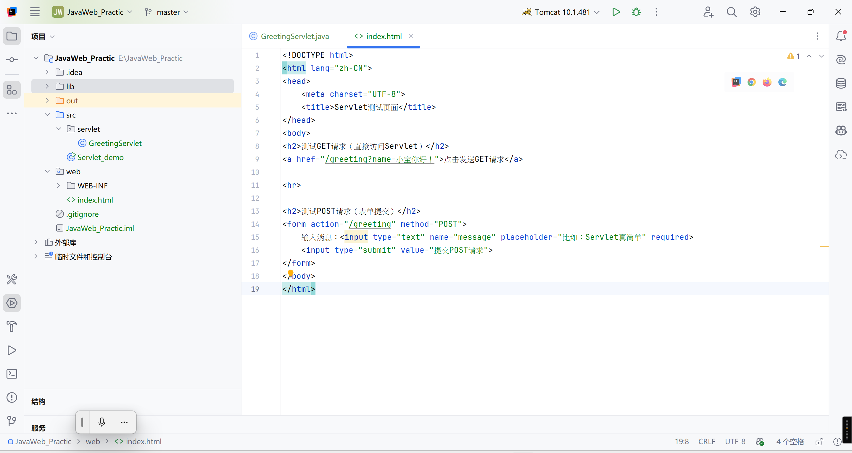 输入消息:<input type="text" name="message" placeholder="比如:Servlet真简单" required>