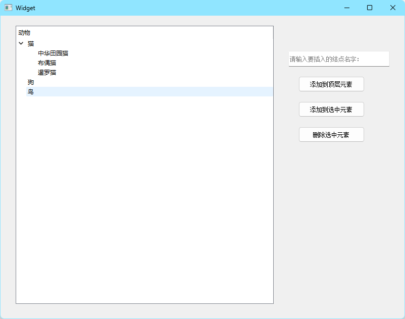 - 节点删除 :子节点需通过父节点removeChild删除,顶层节点需通过树形控件takeTopLevelItem删除;