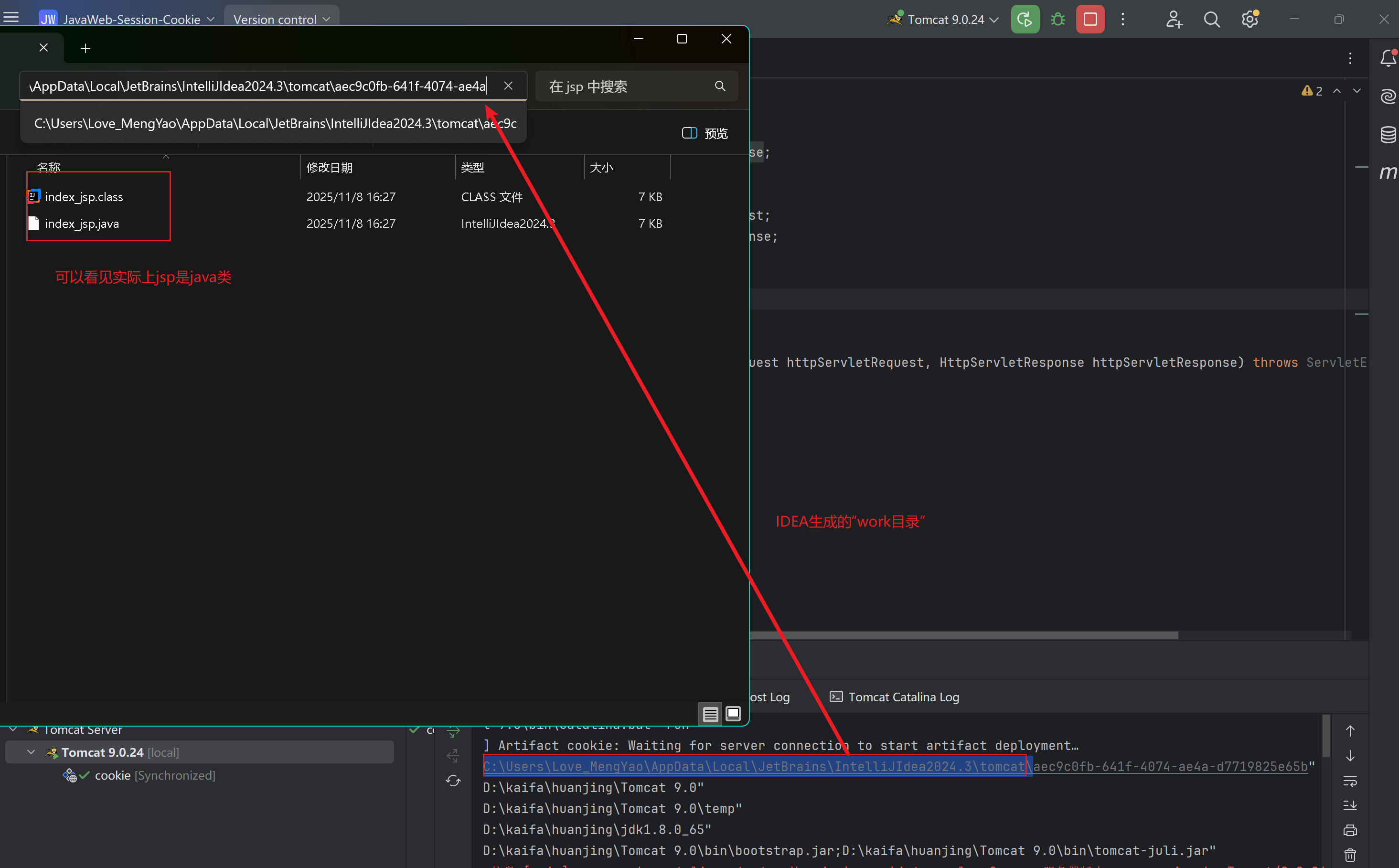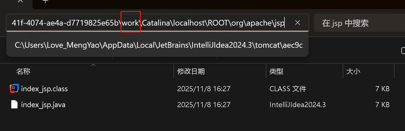 - IDEA中使用Tomcat会在IDEA的tomcat中生成一个work目录