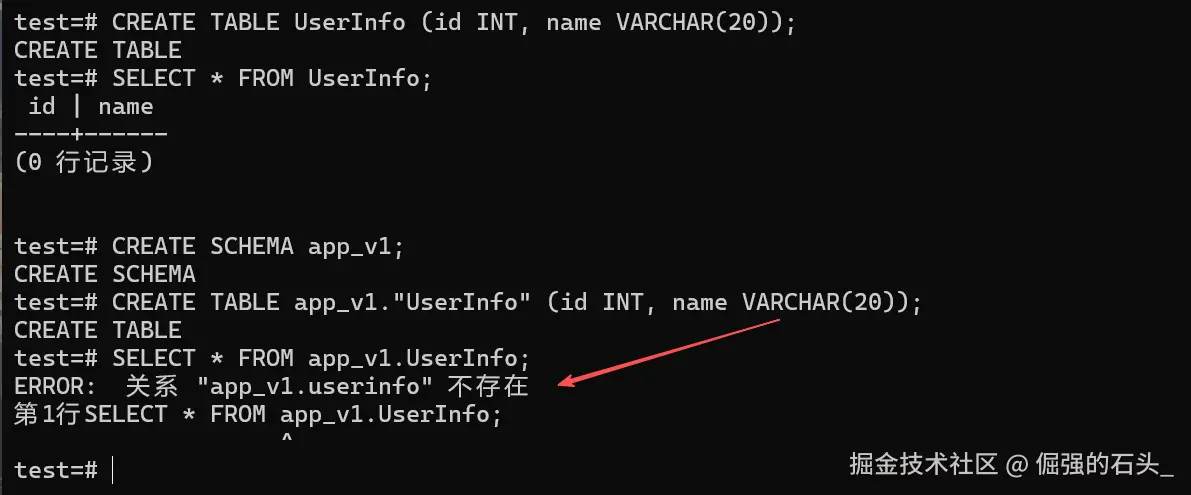 现象描述 : 大家可能遇到过这种情况:明明刚建了个表叫 UserInfo,结果用 SELECT * FROM UserInfo 一查,直接报错:ERROR: relation "userinfo" does not exist。这时候你可能会怀疑人生:表呢?我刚建的表呢?