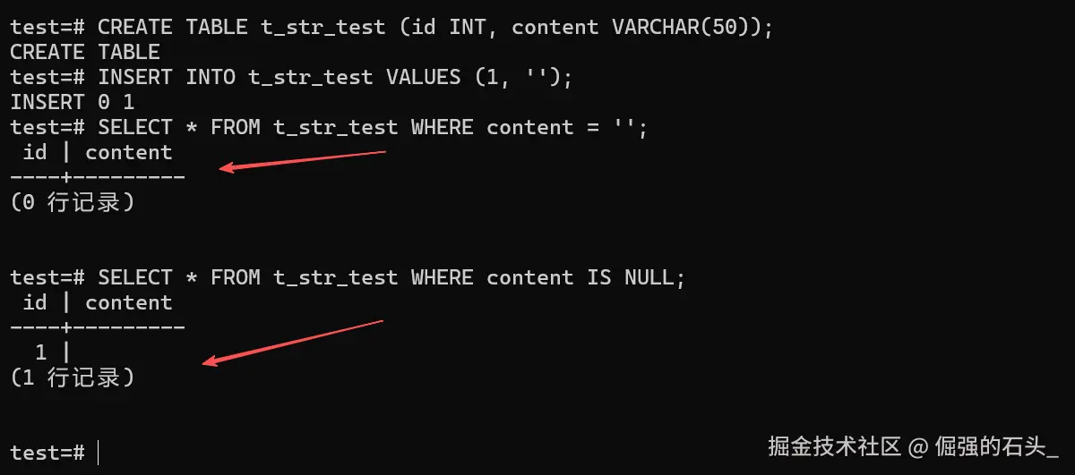 现象描述 : 很多从 MySQL 转过来的兄弟习惯用 ''(空字符串)代表"没东西"。结果写入数据后,用 WHERE content = '' 死活查不到数据,换成 IS NULL 反倒查出来了。这就很迷:我的空字符串去哪了?